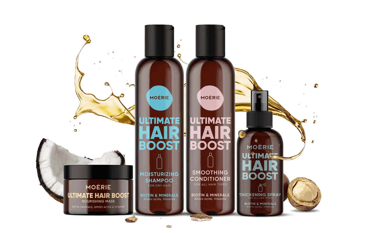 After giving birth my hair became quite thin. I came across Moérie and it stood out to me, as it's cruelty free and covers various areas of hair health like thicker and more shine. My hair does not get oily as quick now. I'm so pleased with results and look forward to continuing.
