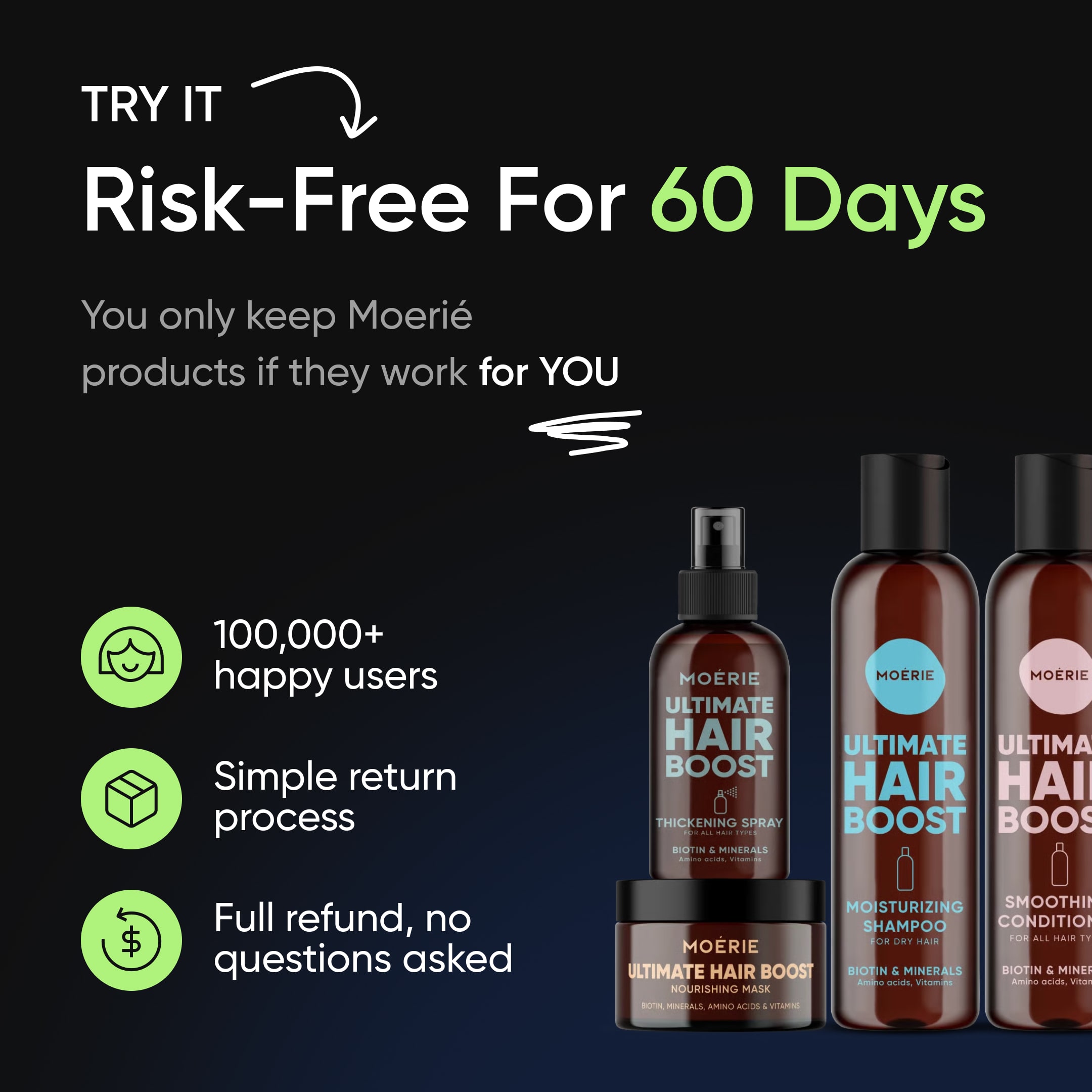New maximum-potency formula — increase your hair growth with Moérie.